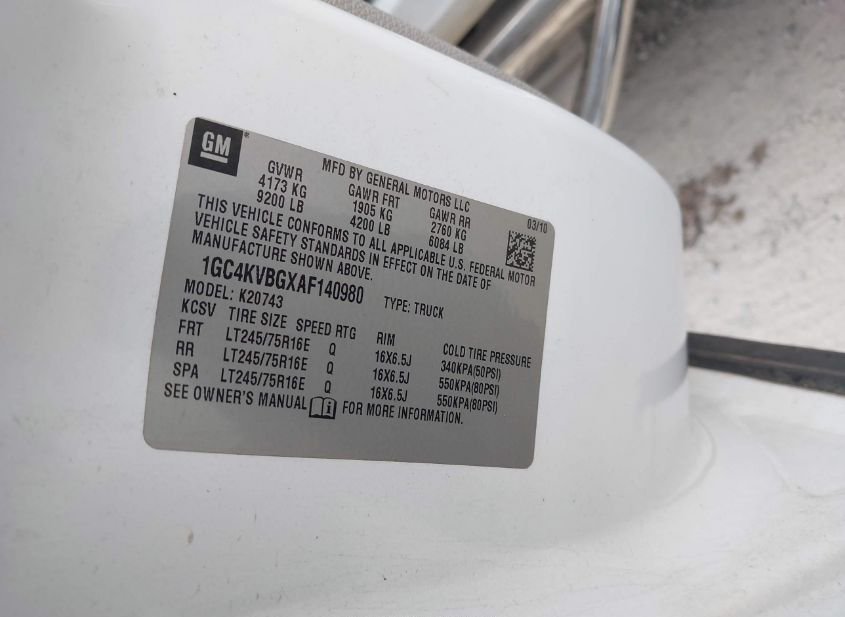 - VIN: 1GC4KVBGXAF140980