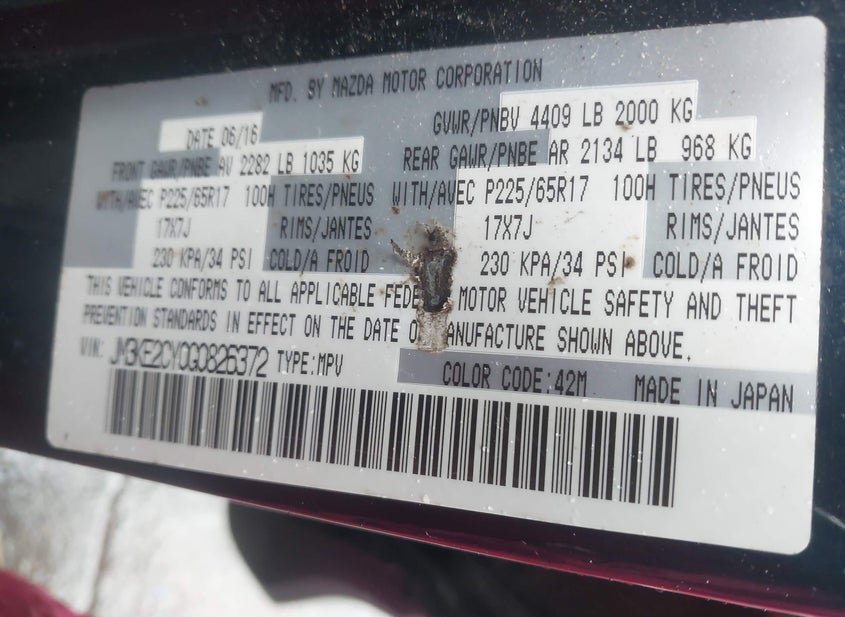 - VIN: JM3KE2CY0G0826372
