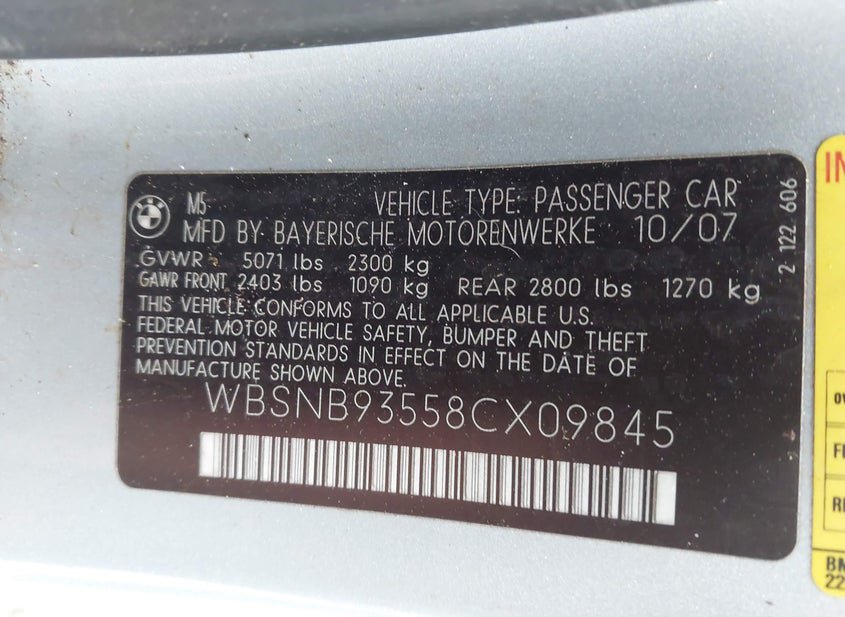 - VIN: WBSNB93558CX09845