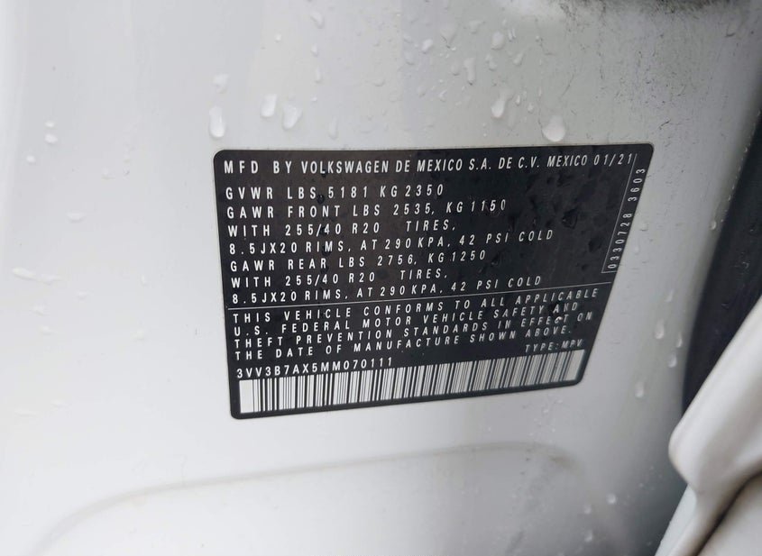 - VIN: 3VV3B7AX5MM070111