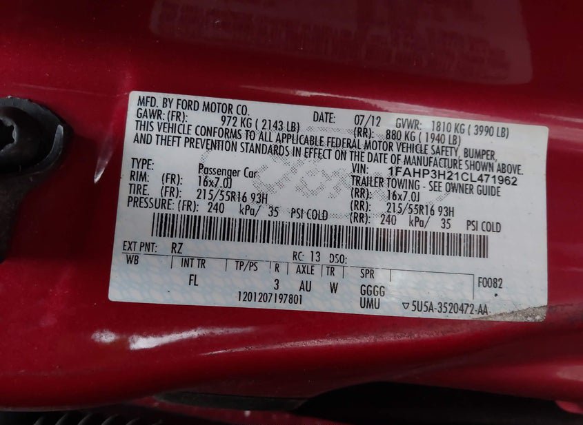 - VIN: 1FAHP3H21CL471962