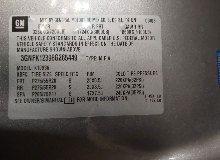 - VIN: 3GNFK12398G265449