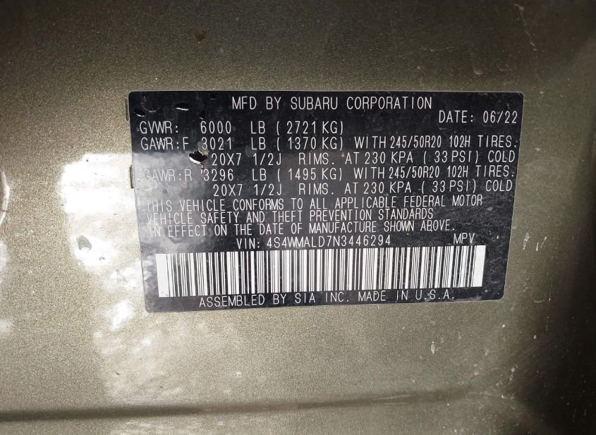 - Название лота: 2022 SUBARU ASCENT LIMITED