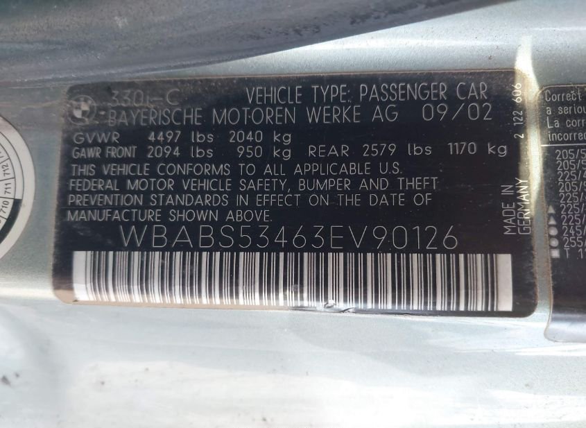- VIN: WBABS53463EV90126