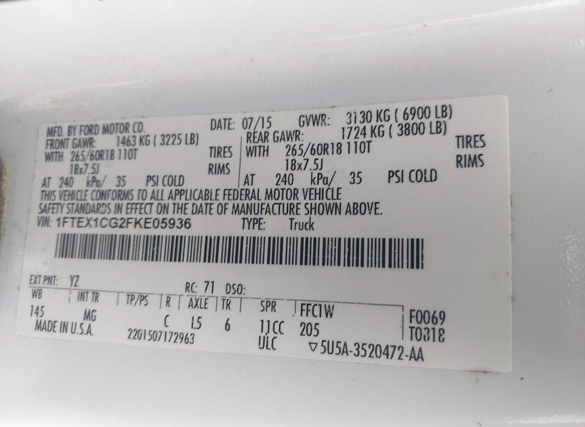 - Название лота: 2015 FORD F-150 XLT