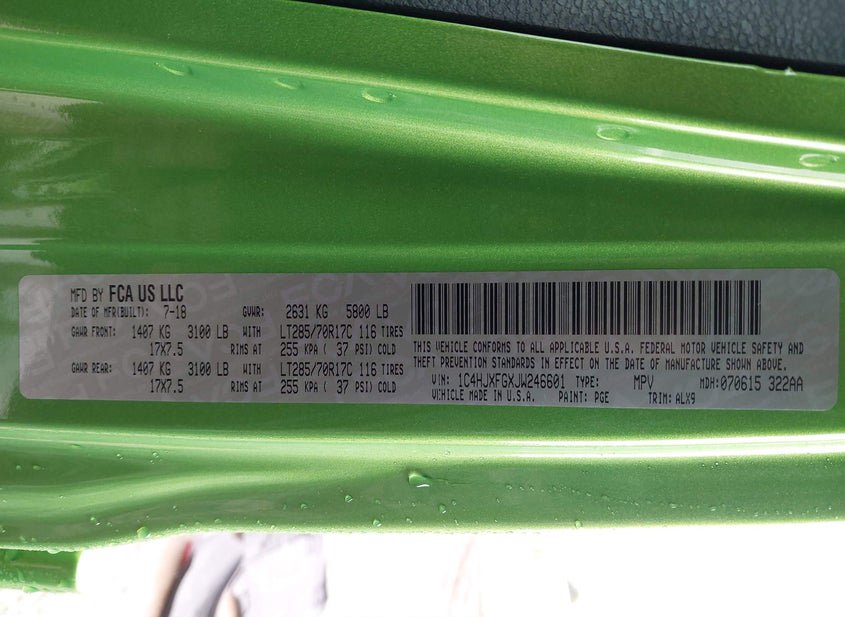 - VIN: 1C4HJXFGXJW246601