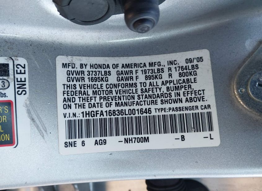 - VIN: 1HGFA16836L001646