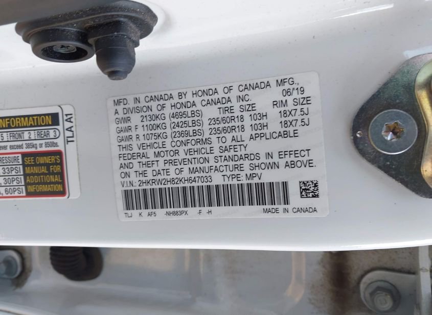 - VIN: 2HKRW2H82KH647033