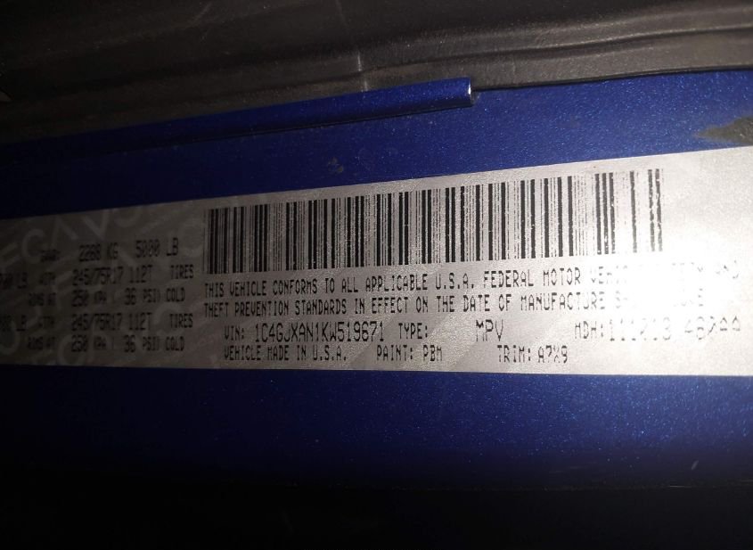 - VIN: 1C4GJXAN1KW519671