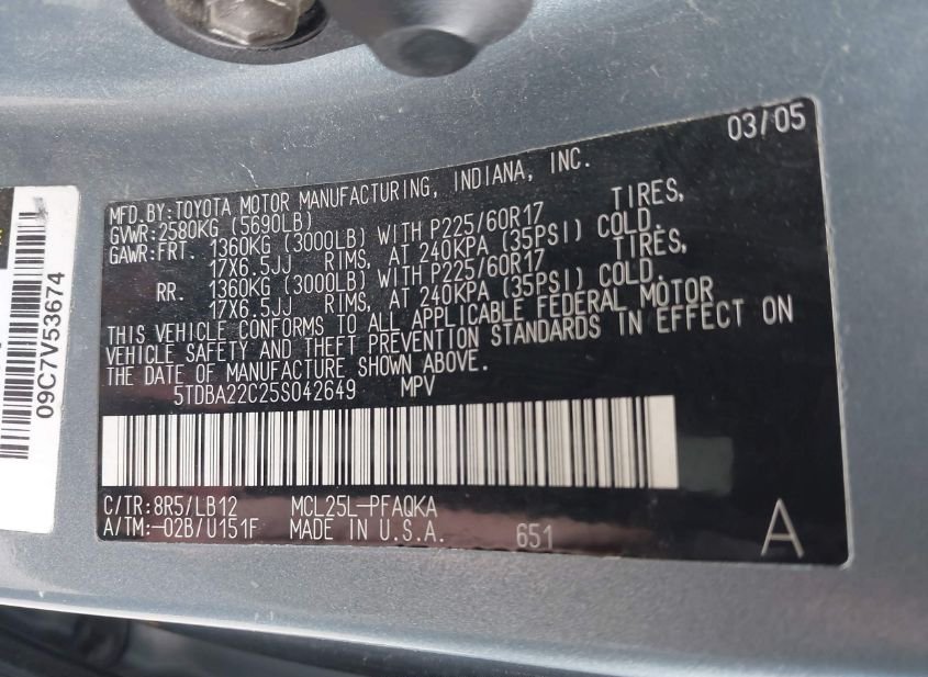- VIN: 5TDBA22C25S042649