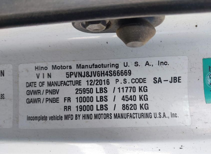 - Название лота: 2017 HINO 258/268