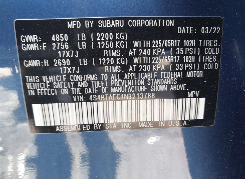 - Название лота: 2022 SUBARU OUTBACK PREMIUM