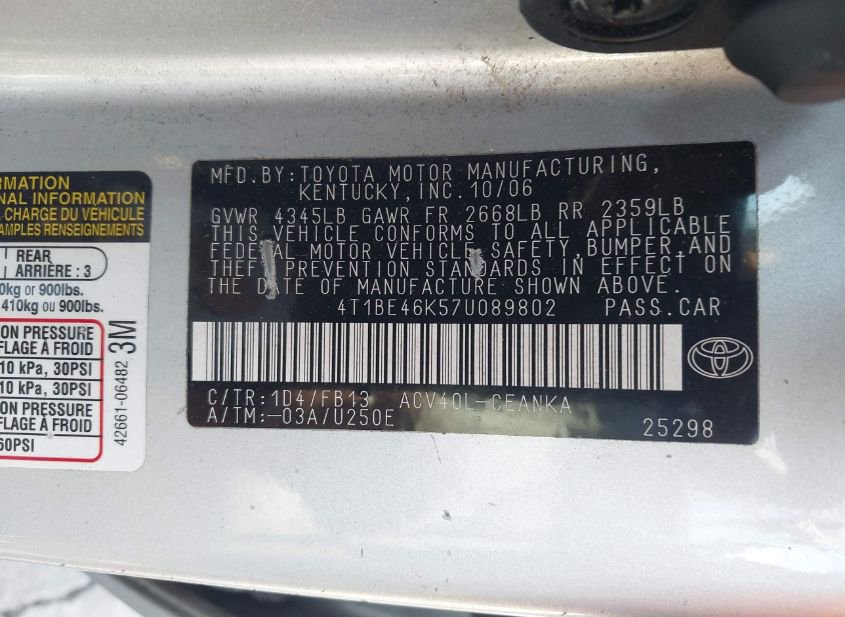 - VIN: 4T1BE46K57U089802