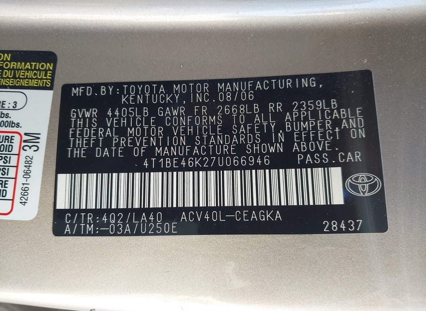 - VIN: 4T1BE46K27U066946