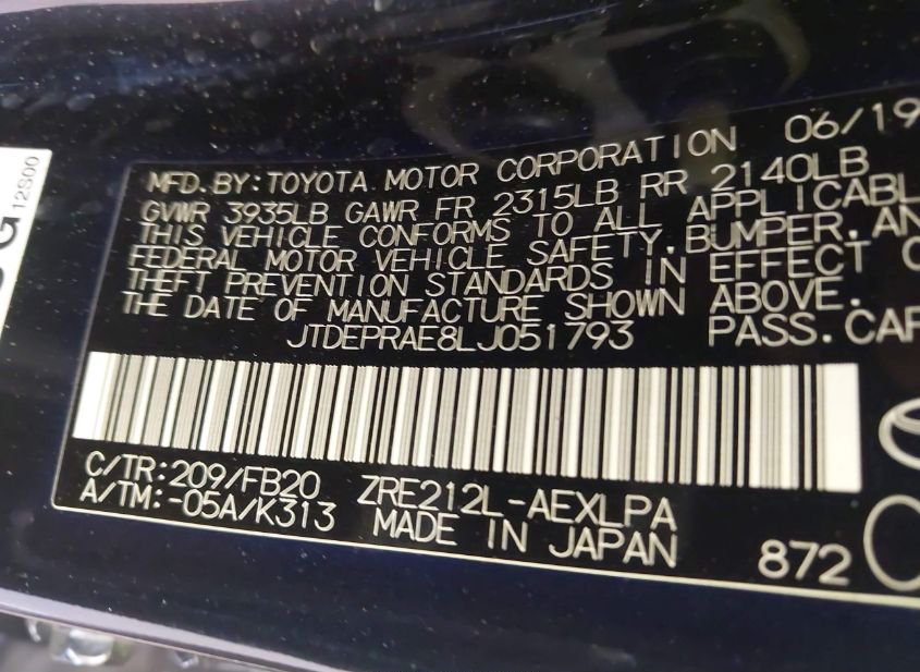 - VIN: JTDEPRAE8LJ051793