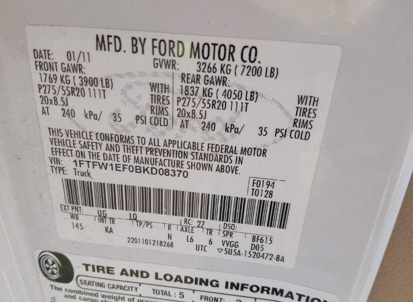 - VIN: 1FTFW1EF0BKD08370