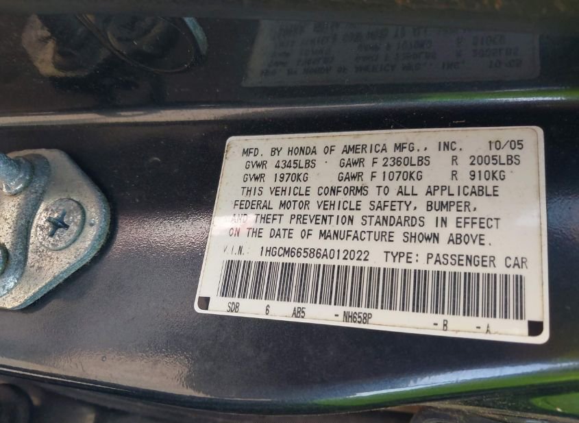- VIN: 1HGCM66586A012022