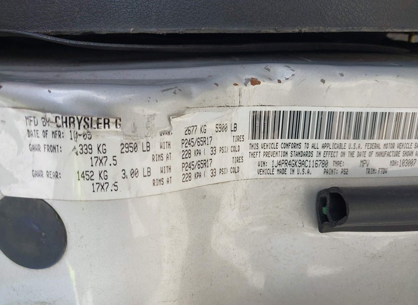 - VIN: 1J4PR4GK9AC116780