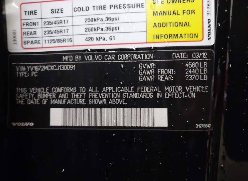 - VIN: YV1672MCXCJ130091