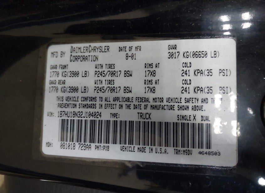 - VIN: 1B7HU18N32J104024