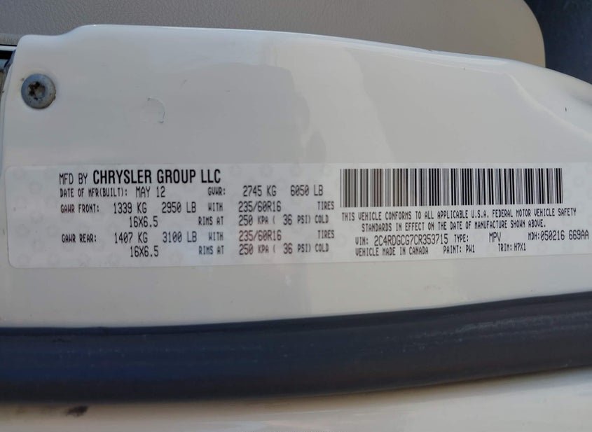 - VIN: 2C4RDGCG7CR353715