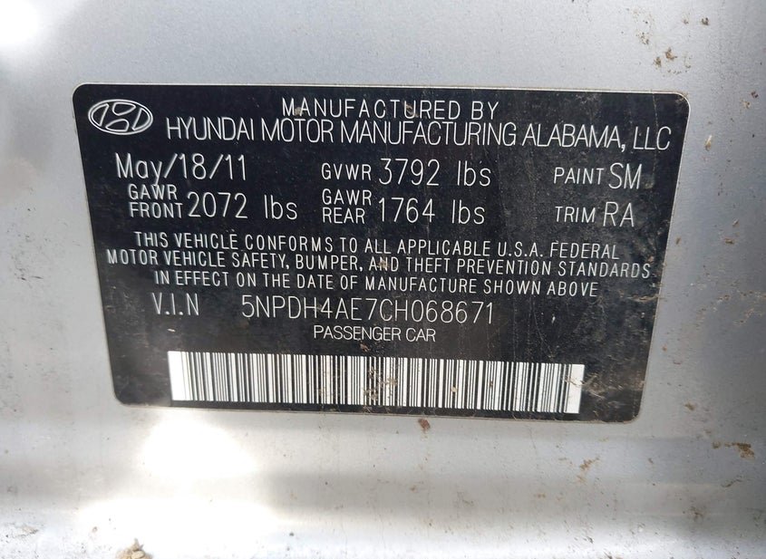 - VIN: 5NPDH4AE7CH068671