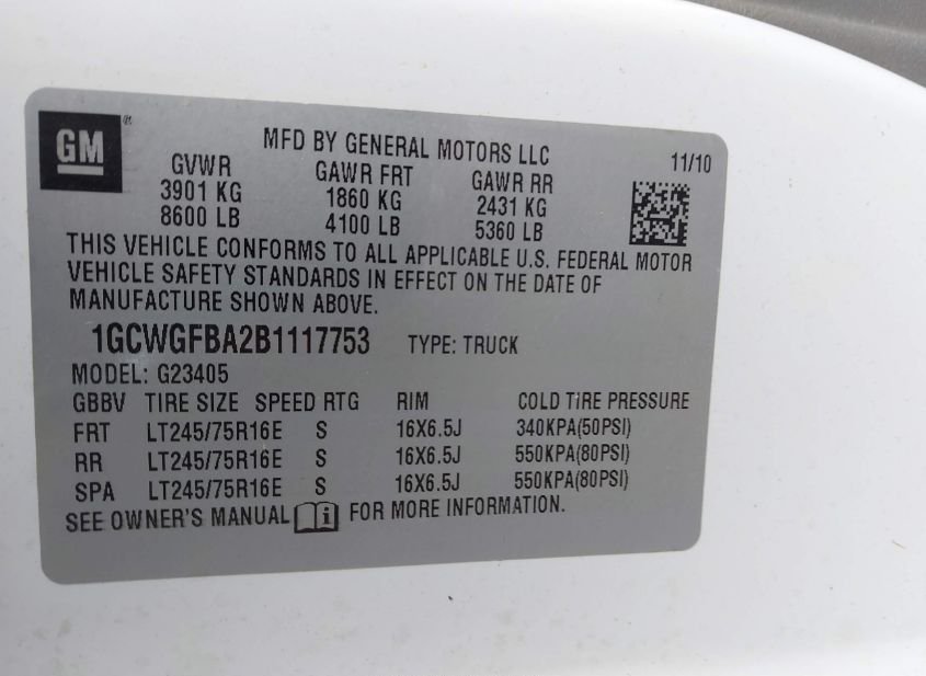 - VIN: 1GCWGFBA2B1117753