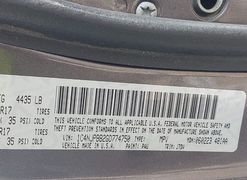 - VIN: 1C4NJPBB2GD774750