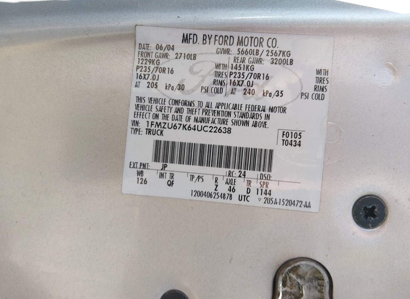- VIN: 1FMZU67K64UC22638
