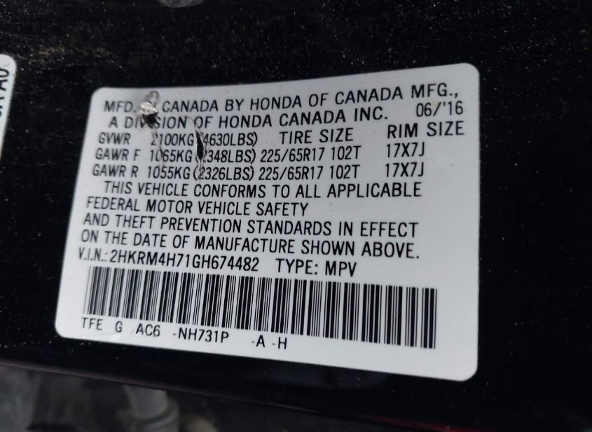 - VIN: 2HKRM4H71GH674482