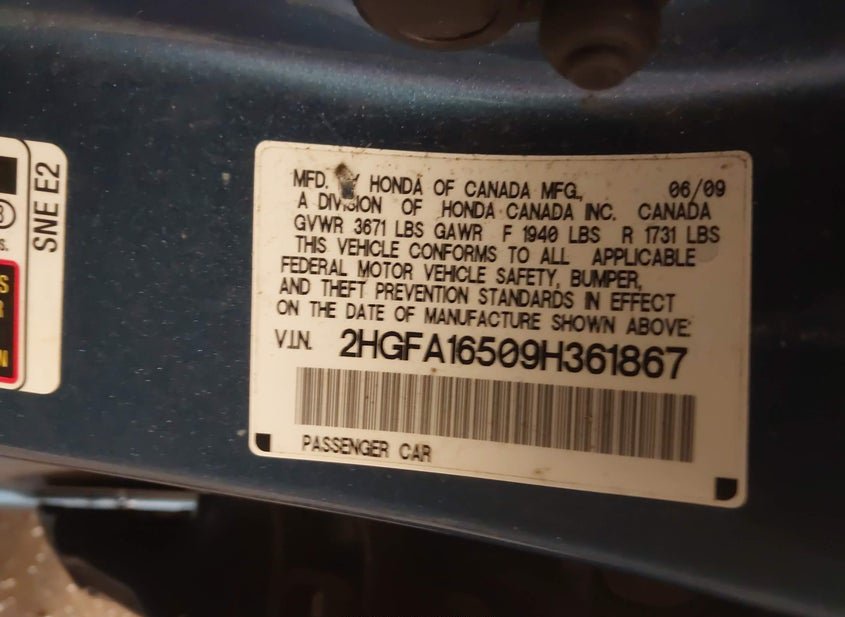 - VIN: 2HGFA16509H361867