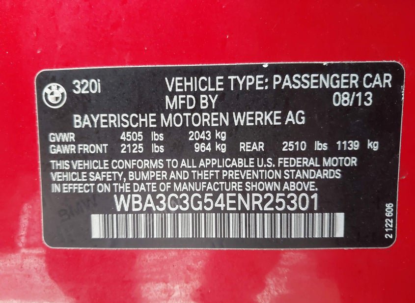 - VIN: WBA3C3G54ENR25301