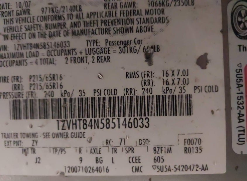 - VIN: 1ZVHT84N585146033