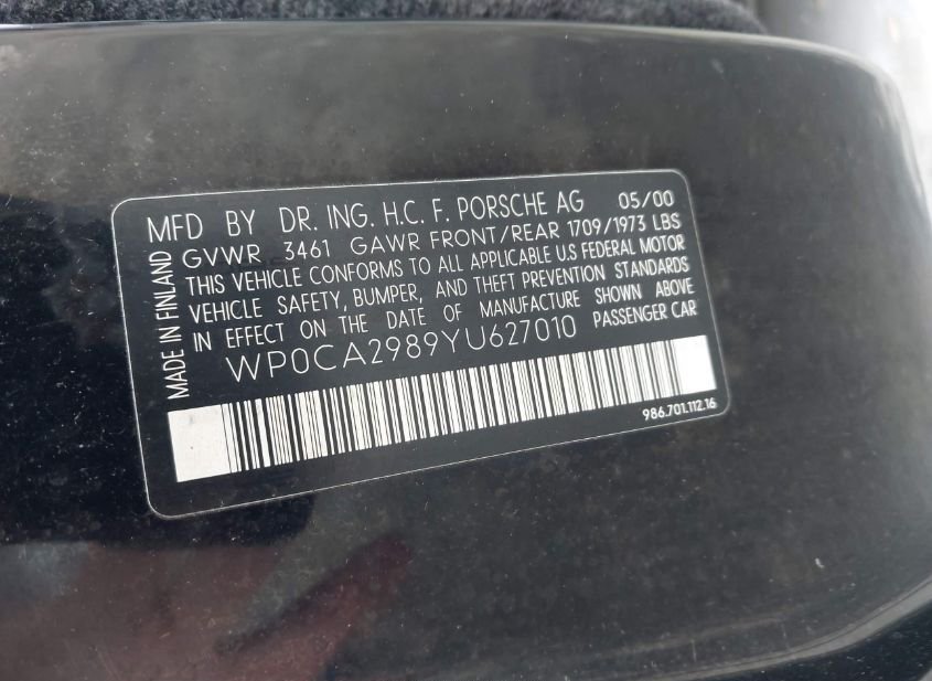 - VIN: WP0CA2989YU627010