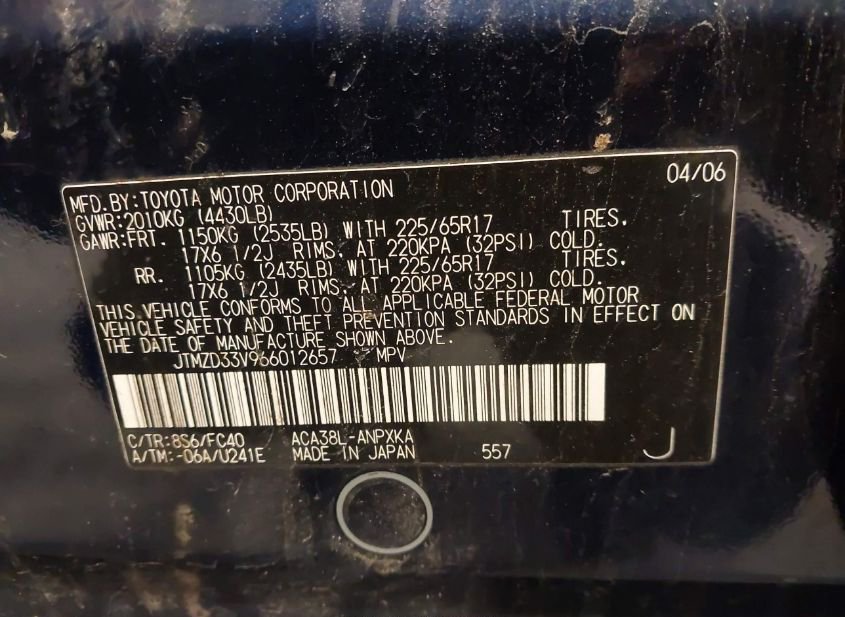 - VIN: JTMZD33V966012657