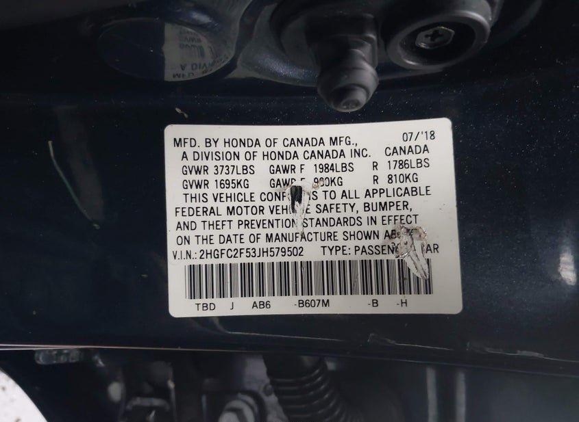 - VIN: 2HGFC2F53JH579502