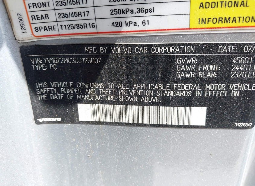 - VIN: YV1672MC3CJ125007