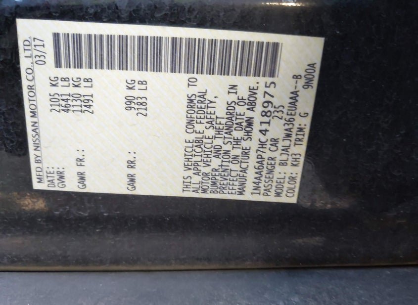 - VIN: 1N4AA6AP7HC418975
