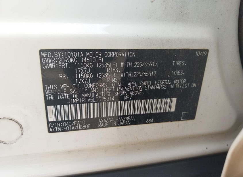 - VIN: JTMP1RFV5LD525314