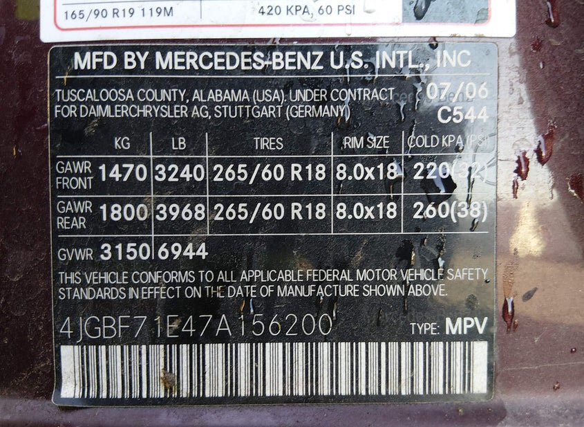 - VIN: 4JGBF71E47A156200