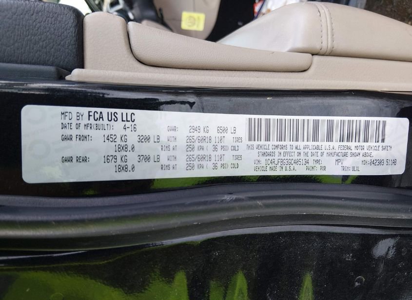- VIN: 1C4RJFBG3GC405134