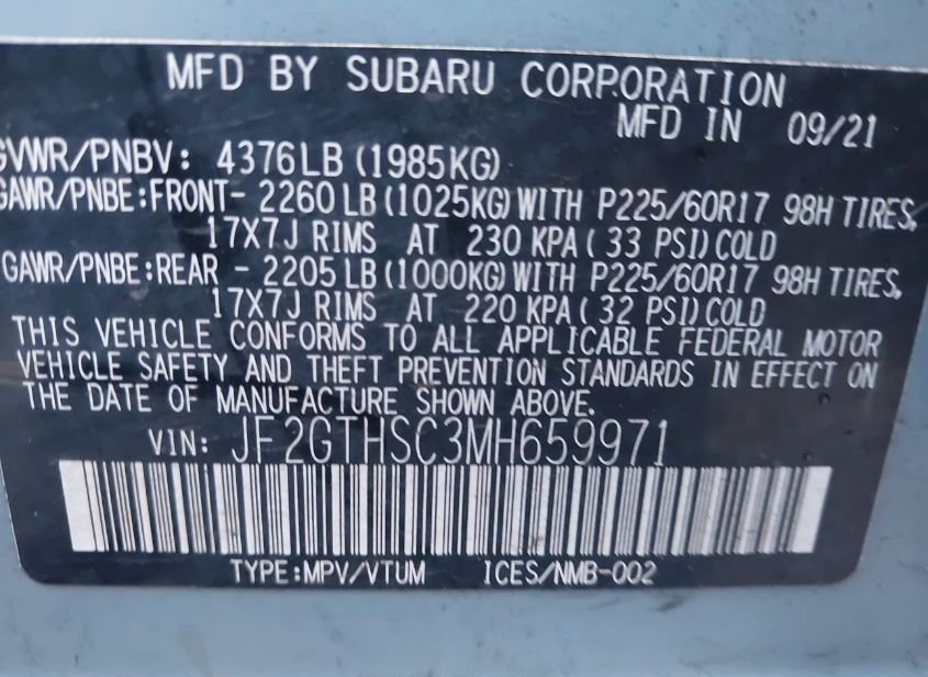 - VIN: JF2GTHSC3MH659971