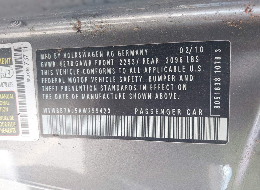 - VIN: WVWBB7AJ5AW299423