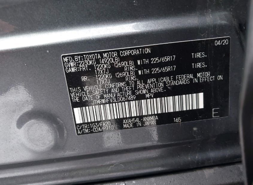 - VIN: JTMRWRFV3LD067489