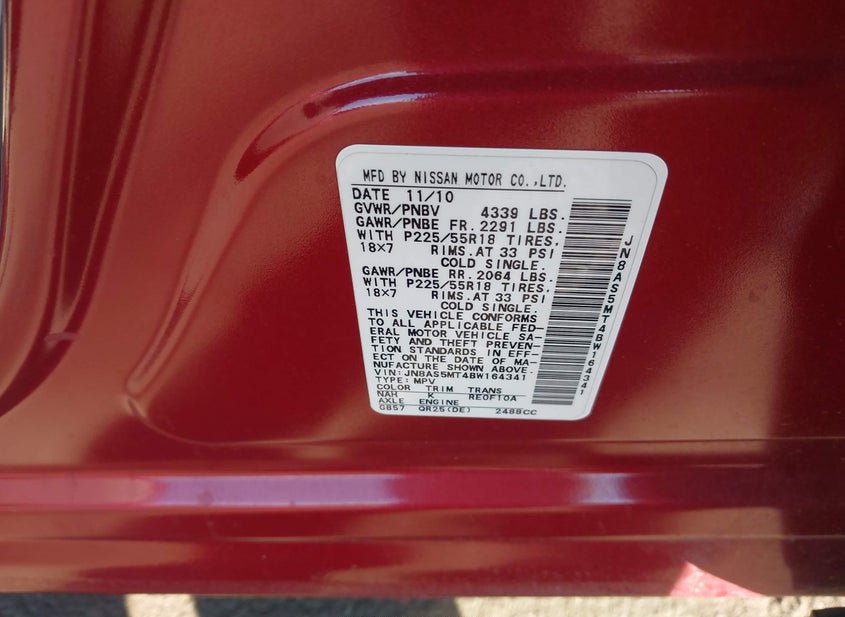 - VIN: JN8AS5MT4BW164341