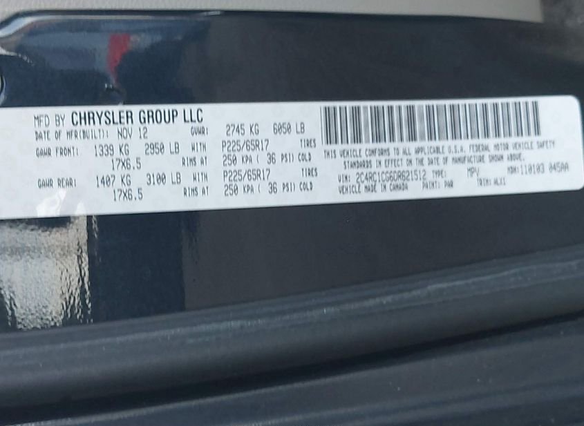 - VIN: 2C4RC1CG6DR621512