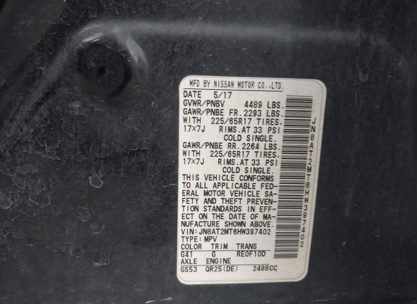 - VIN: JN8AT2MT6HW397402