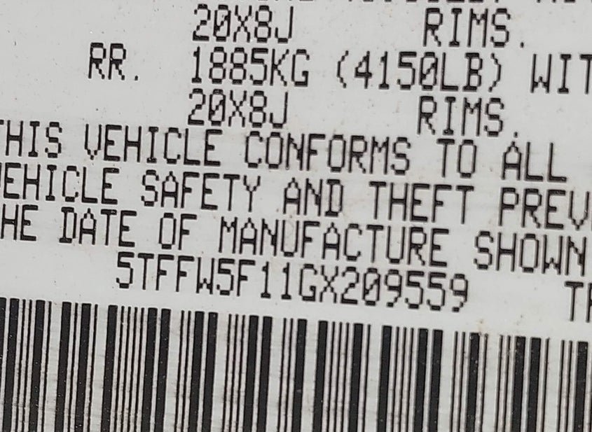- VIN: 5TFFW5F11GX209559