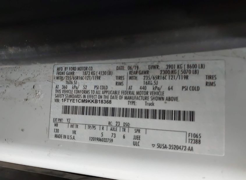 - VIN: 1FTYE1CM9KKB18368