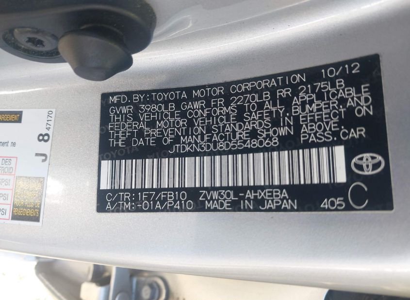 - VIN: JTDKN3DU8D5548068